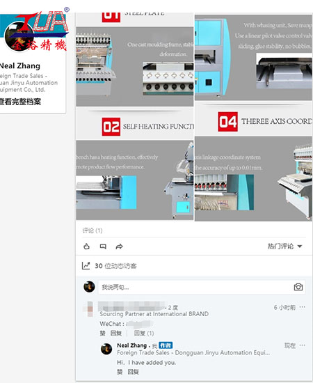 下午在社交網(wǎng)站上發(fā)了一則金裕點(diǎn)膠機(jī)細(xì)節(jié)圖的一個預(yù)覽,沒想到一個外國客戶在下面評論并留下了自己微信想要了解點(diǎn)膠機(jī)這個設(shè)備,加了微信后給這個孟加拉的客戶發(fā)了點(diǎn)膠機(jī)的相關(guān)資料視頻,這個孟加拉的客戶說要來我們工廠看,具體來的時間暫時不知道,后續(xù)來中國有相關(guān)安排,在給到通知!金裕歡迎每一個客戶來到廠內(nèi)參觀了解設(shè)備,選擇金裕沒有顧慮?。。?/span> ![]() 東莞市金裕自動化機(jī)械設(shè)備有限公司成立于2000年,金裕坐落于東莞市大嶺山向東工業(yè)區(qū),創(chuàng)辦硅膠、PVC商標(biāo)禮品生產(chǎn)設(shè)備.金裕研發(fā)的全自動點(diǎn)膠機(jī)、矽膠機(jī)、油壓機(jī)、KPU鞋材機(jī)以及終于實現(xiàn)了的智能無人車間生產(chǎn)流水線,金裕的自動化設(shè)備可以做到讓你省人、省電、省管理。金裕公司歡迎新老來訪,選擇金裕,沒有顧慮。www.shanghaizhaojing.com |