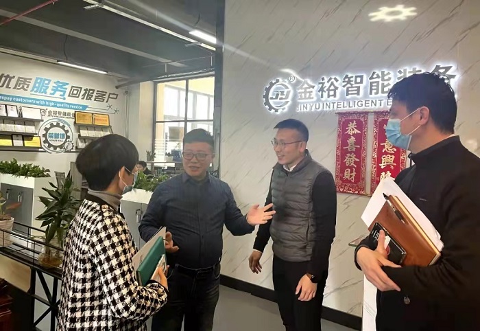 葉笑美一行還前往入園企業(yè)東莞市金裕自動(dòng)化機(jī)械設(shè)備有限公司,深入了解企業(yè)生產(chǎn)情況、2021年產(chǎn)值及2022年發(fā)展計(jì)劃。考察組與各企業(yè)負(fù)責(zé)人親切交談,鼓勵(lì)企業(yè)用好用足政策,加大科技創(chuàng)新力度,促進(jìn)企業(yè)高質(zhì)量發(fā)展。