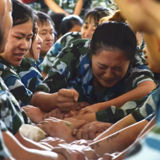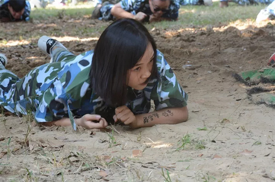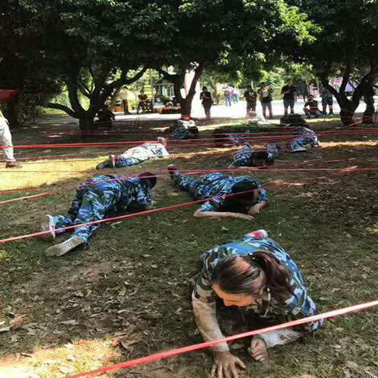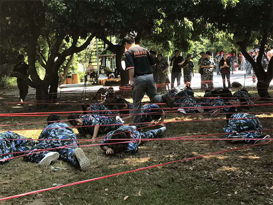 第二個(gè)項(xiàng)目是“人間煉獄”,分別由兩個(gè)人雙手和對(duì)方緊緊握住,形成一條人工長(zhǎng)梯,然后每個(gè)人都要從上面爬行通過(guò)。這個(gè)活動(dòng)給我的感觸最深,當(dāng)自己的手握住隊(duì)友的手向前攀爬時(shí),感受到滿(mǎn)滿(mǎn)的溫暖和力量,隊(duì)友們承載的是支持和痛苦。當(dāng)自己快爬不動(dòng)的時(shí)候,看著周?chē)鷥尚旋R刷刷鼓勵(lì)的眼神,想著自己多停頓一會(huì),就會(huì)給隊(duì)友多帶去一絲痛苦,咬緊牙關(guān)繼續(xù)前行。隊(duì)友中還有55歲的公司老板,可是他絲毫沒(méi)有因?yàn)樽约旱奶厥猓痛蠹乙粯优?,?jiān)持到終點(diǎn)。最后每個(gè)人都順利通過(guò)考驗(yàn)。
