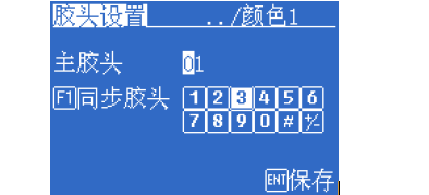 比如該文件需要2個顏色,顏色1使用膠頭1黃色的顏料,點外框,顏色2使用膠頭2藍色的顏料點字體。 第二步:設置顏色1的膠頭參數,讓膠頭3和膠頭1同步,如下圖所示。膠頭3同樣也使用黃色的顏料。