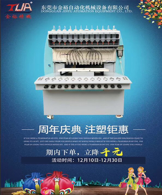 注意了~注意了~金 裕 18 周 歲 啦!公司為了感謝這十八年以來(lái),一直相信金裕支持金裕的新老客戶的的大力支持,為此金裕在這做了一系列的促銷(xiāo)活動(dòng)在12.10-12.30日內(nèi)下單立減千元,歡迎大家的到來(lái)和支持,金裕的機(jī)器為客戶創(chuàng)造價(jià)值,我們金裕人才能夠存在價(jià)值。![]() ![]() ![]() 東莞市金裕自動(dòng)化機(jī)械設(shè)備有限公司成立于2000年,坐落于東莞市大嶺山向東工業(yè)區(qū),創(chuàng)辦硅膠、PVC商標(biāo)禮品生產(chǎn)設(shè)備.金裕研發(fā)的全自動(dòng)全自動(dòng)點(diǎn)膠機(jī)、矽膠機(jī)、油壓機(jī)、KPU鞋材機(jī)等,金裕的自動(dòng)化設(shè)備可以做到讓你省人、省電、省管理。金裕公司歡迎新老來(lái)訪,選擇金裕,沒(méi)有顧慮。 |