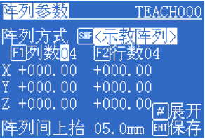 3> 按“[F1] 列數(shù)”,示教針頭到第1行最后1列的子圖基準(zhǔn)點處。(如圖“列1行3”處位置)